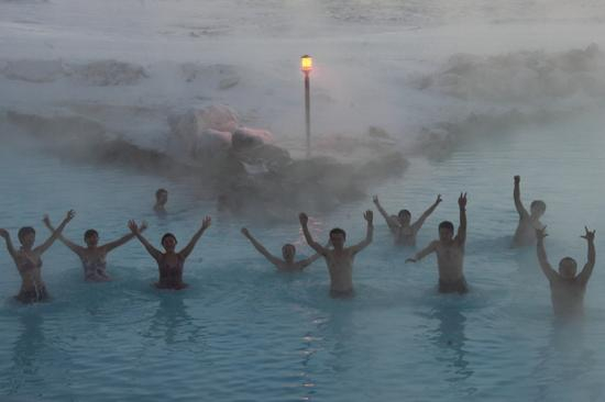 米湖也有个蓝湖温泉,开放在冰天雪地里,在这极地边缘的雪地里泡温泉,无比无比的惬意。