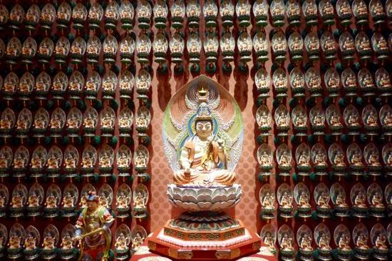 牛车水有一个金碧辉煌的寺庙佛牙寺 (BTRTS), 是在2002年11月由释法照法师创立的。在2003年2月20日在社团法令下注册。新加坡佛牙寺正殿供养一尊庄严的弥勒尊佛,又称“一生补处菩萨”或又称“未来佛”和“弥勒如来”。寺内供有佛牙,还有上千座金佛。