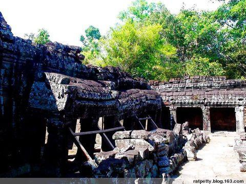 1992年,联合国教科文组织将吴哥古迹列入世界文化遗产名录,同时也将它列入濒危世界文化遗产名单。法国、德国、日本、中国等国家先后参与到对吴哥古迹的抢救和维修工程中来,采用分析重建术复原吴哥窟。无数散件归位,树木杂草被清除,危危然欲倾之大厦在木头架子的支撑下仍然透露出摇摇欲坠。但我们去时塔布隆寺却未作任何修复,完全保存了发现之初的景象:破院残墙。