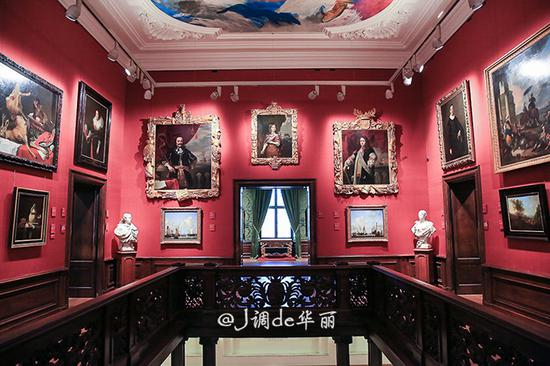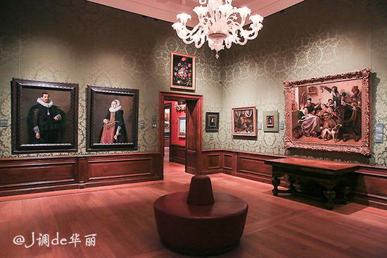 美术馆的内部十分古典华丽,一幅幅陈列在墙上的画作就像昔日宫殿里的装饰,和谐到让人感觉不像是在逛美术馆,而是在逛一所富丽堂皇的17世纪宫殿。