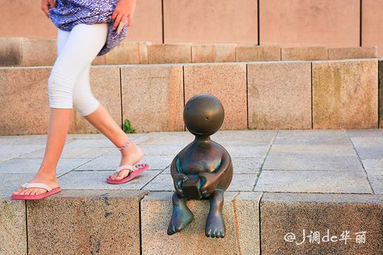 充满童趣的雕塑就那样看似随性地安置在路边,让海滨的气氛活泼灵动了起来。
