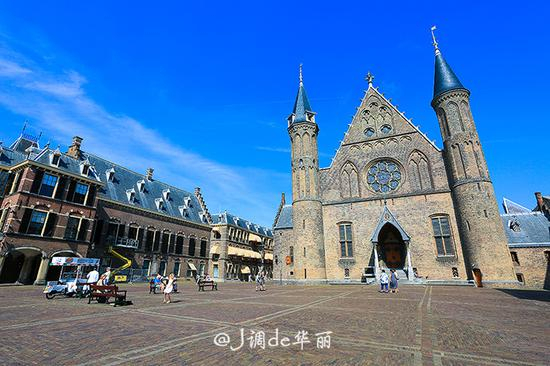 在海牙众多政治机关之当中,国会大厦(Binnenhof)是最引人流连的地方。国会大厦建于13世纪,是一个砖结构的古堡建筑,自建成后一直作为荷兰伯爵的居所,直到16世纪才成为了荷兰的国会大厦。国会大厦的内院原本是伯爵古堡的庭院,有别于国会建筑的肃穆感,内院给人的感觉十分闲适。
