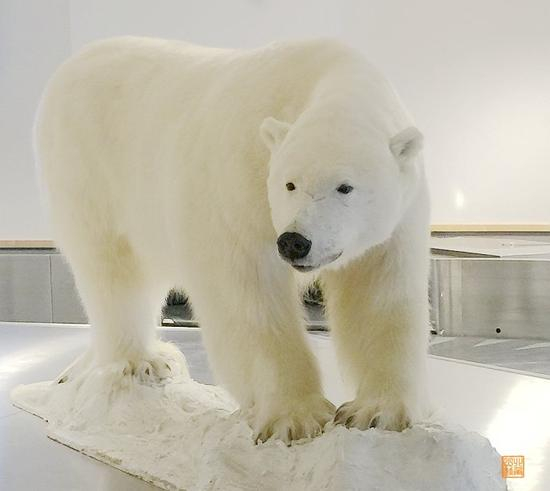 北极熊在朗伊尔城也是无处不在,机场的标本、超市里的照片、博物馆里的模型、啤酒桶上、巧克力上…据说,我们到访的前一周,一只母熊带着两只宝宝,出现在朗伊尔城,最后是动用了两架直升机才把它们赶走……