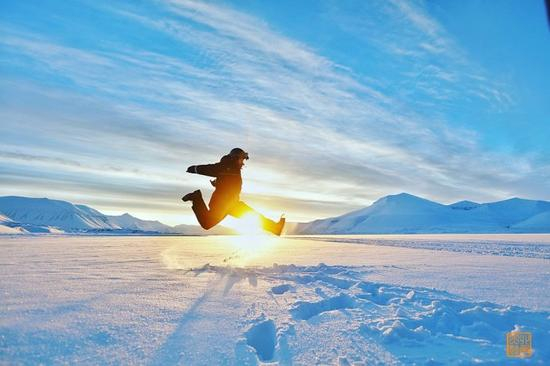 没看到北极熊,同行的小伙伴就玩儿起了阿西跳跃:)