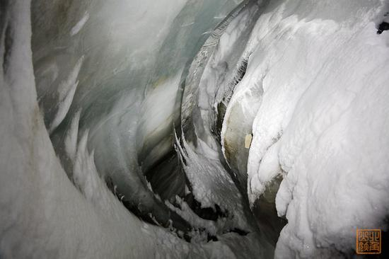 冰川的肚子里,除了多年形成的冰川冰,还有落入洞内的冰雪…。