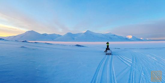 冬天,参加从朗伊尔到Svea的雪地摩托行程,靠近Svea的Van Mijenfjorden 峡湾在冬天会聚集很多环斑海豹,因此必定会有北极熊出没。