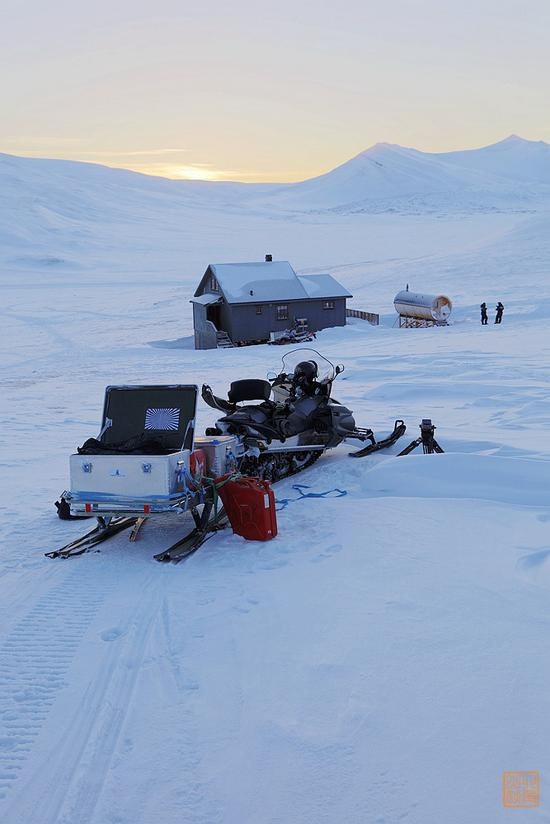 那间木屋,位于Nordenskiöld land,距离狗场近20公里,雪橇是我们唯一的交通工具。