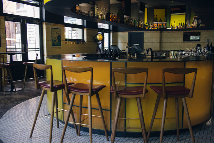 悉尼酒吧的形式大多是这样中间一个椭圆形吧台,周边是桌椅,这间酒吧据说有些年头了,而设计师也是修旧如旧,地面上有着这些年来洒的各种酒的痕迹,墙壁上的瓷砖即使破损也没有去修理,要的就是这种岁月磨蚀的感觉。