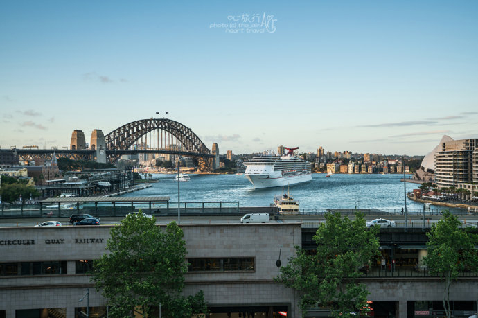 坐在露台上,能看到悉尼港的美丽景色。尽管风吹得有点冷,但露台的座位还是被预订一空,店家贴心的给每位客人准备了毯子。