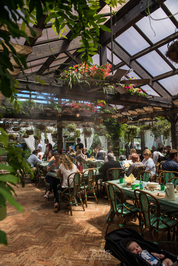 我们选了里面叫Potting Shed的餐厅,一张张餐桌摆在错落有致的植物之间,鼻子里都是湿润清新。