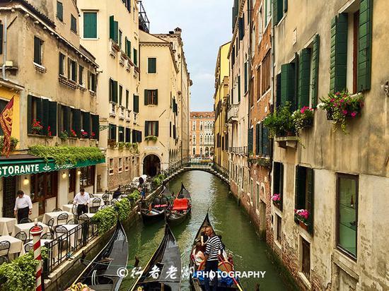 贡多拉船夫都穿着当地的条纹海魂衫,如果夏季太阳很大,还会像老电影里一样戴着草帽,为你高歌一曲,即使不会唱歌的船夫,也能为你吹上一支口琴。