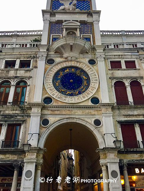 带有星座雕塑的大钟,里面的星空模仿了青金石的蓝色。顶部带翅膀的雄狮,是威尼斯城市的标志。
