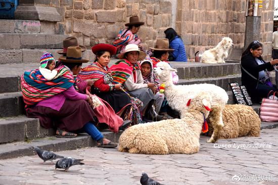 街道上不时走过身着传统印加服饰,牵着羊驼的妇人。