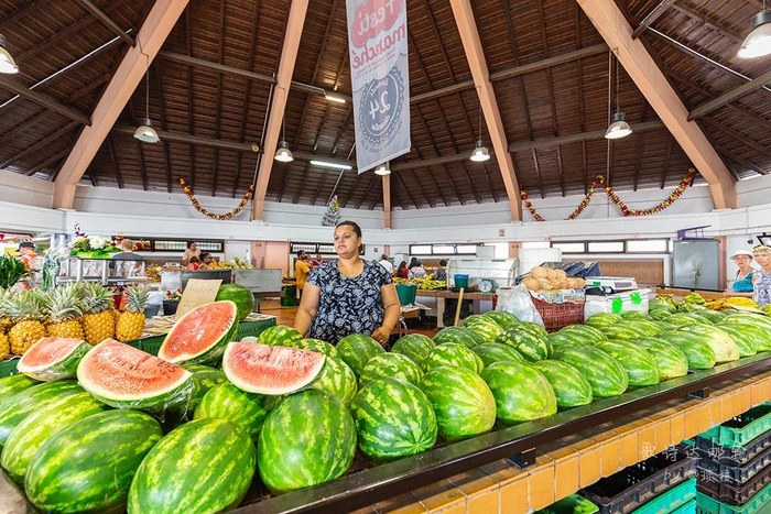 乘着hop-on hop-off的大巴,我先来到morning market,因为这里中午12点就关门。当然要先来完成任务——买冰箱贴。市场早上非常繁忙,各种各样的摊位让人目不暇接,新鲜的蔬菜、水果和海鱼能满足每一个食客的需求。还有一些别致的饰品和手工艺品。
