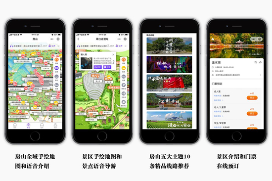 “一键游房山”以游客服务为中心,景区电子导览、景点语音讲解、视频、美图等应用和展示功能,让游客足不出户,便可云游房山。目前,辖区内30家景区景点拥有了在线电子导览图和语音导游,全部等级景区实现了门票在线预约预订服务。同时,房山辖区内数百家旅游住宿、餐饮、购物、娱乐单位也入驻了该平台,通过先进的互联网技术,打通了吃、住、玩、乐、购等旅游一体化服务,便捷了游客的旅游消费。“一键游房山”还将承载房山辖区内涉旅单位的信息展示和营销宣传,将成为房山文旅对外宣传的阵地,成为行业职能部门监管旅游资源运行、规范旅游企业经营的有力抓手,成为房山文旅大数据统计的重要渠道。