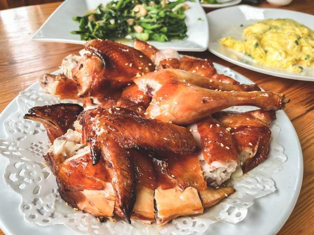 烧鸡一般用1斤多的本地胡须鸡,肥瘦刚刚好,一口下去,皮脆肉嫩,还有甘香在口中逗留,简直是味蕾的享受,非常非常好吃!女儿吃得停不下嘴,一下子就将两个鸡腿吃下去,她一个人差不多吃了半只鸡,就知道有多美味了。