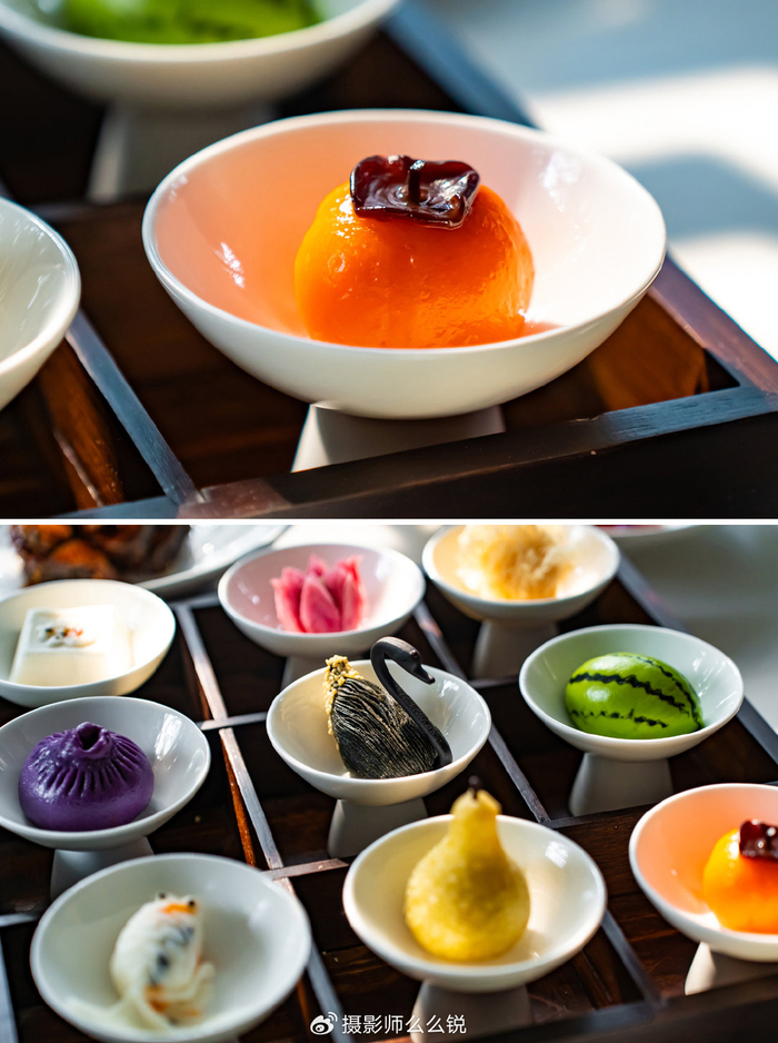 趣园的饭团上也武装了鱼子酱,黄澄澄的桂花汤圆甜蜜爽口,高邮的双黄鸭蛋也从不缺席。